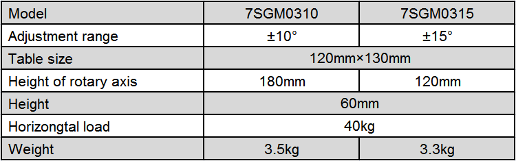 1、Rotary sdjustment; 2、Horizontal mounting surface,convenient for installation and fixing; 3、Design for paired use,rotary center is the same point after superposition, suitable for orthogonal biaxial rotating adjustment; 4、Driving by worm gear paired,ring balls guide rail combined with annular steel,comfortable movement,precide and reliable; 5、Locking by hand wheel,safe and reliable.