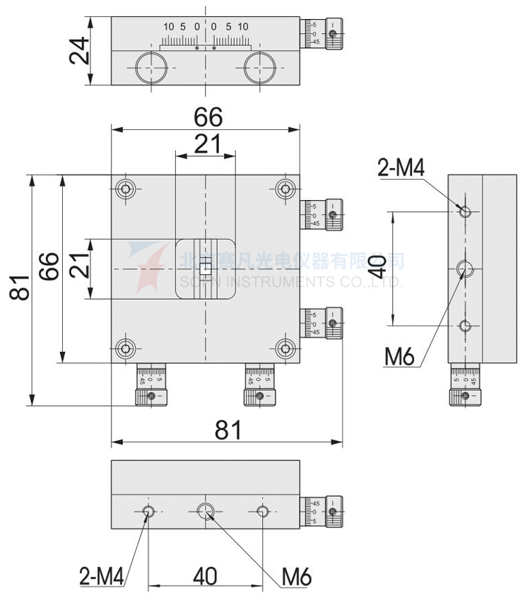 1、Two pairs of blades keep perpendicular make orthogonal slits; 2、Width and height of slit are adjustable respectively and quantitatively.