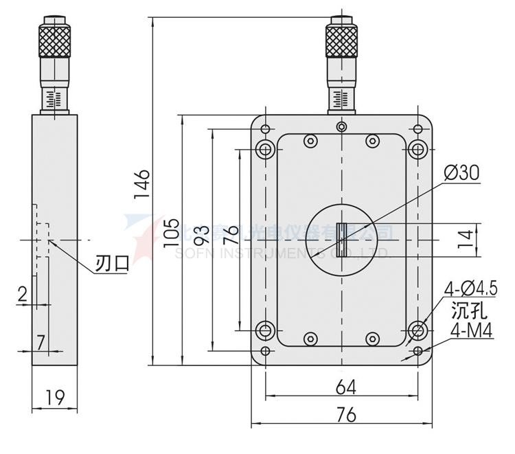 1、Two blades open and close symmetrically with quantitative reading on micrometer; 2、Elastic blade rack,high precision.