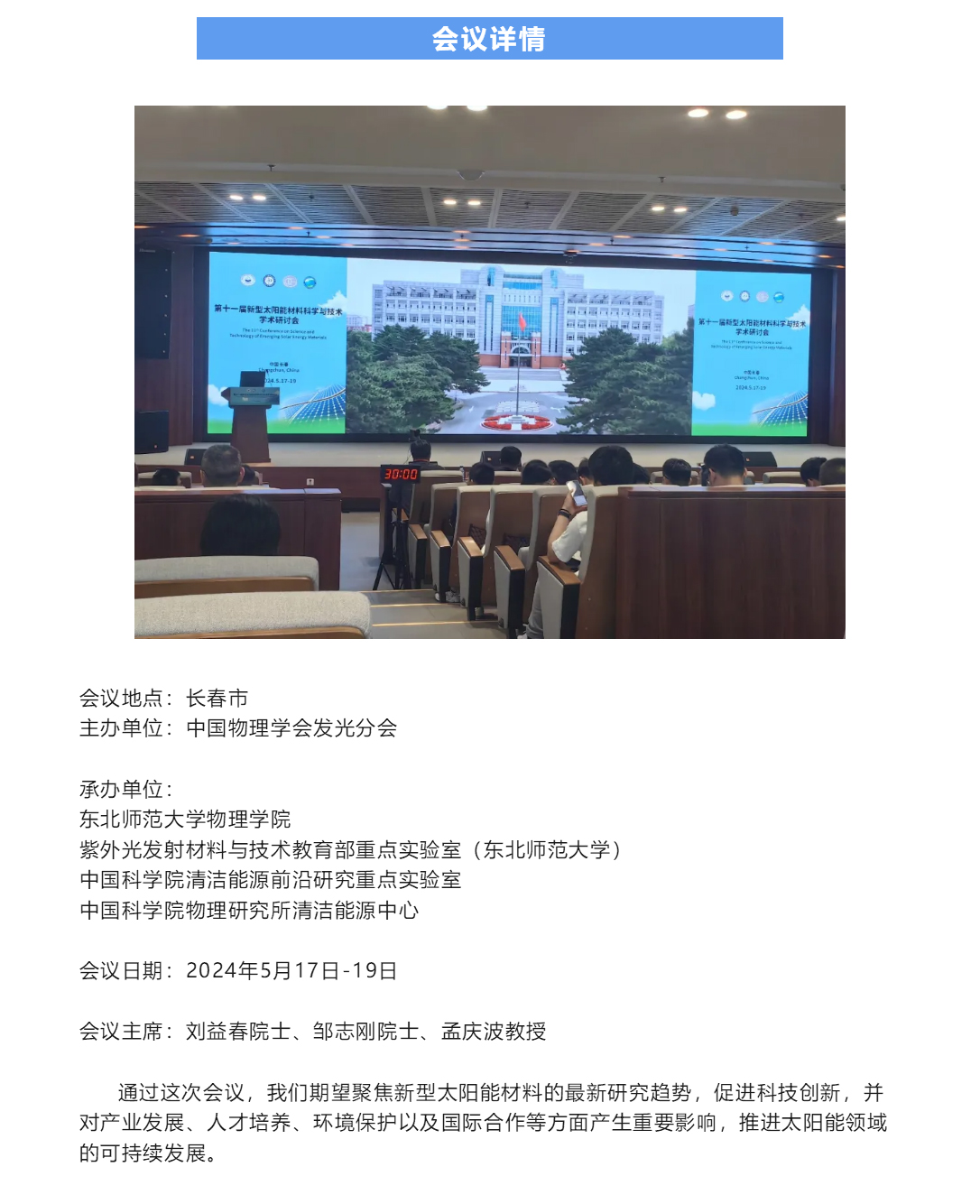 第十一届新型太阳能材料科学 与技术学术研讨会成功召开