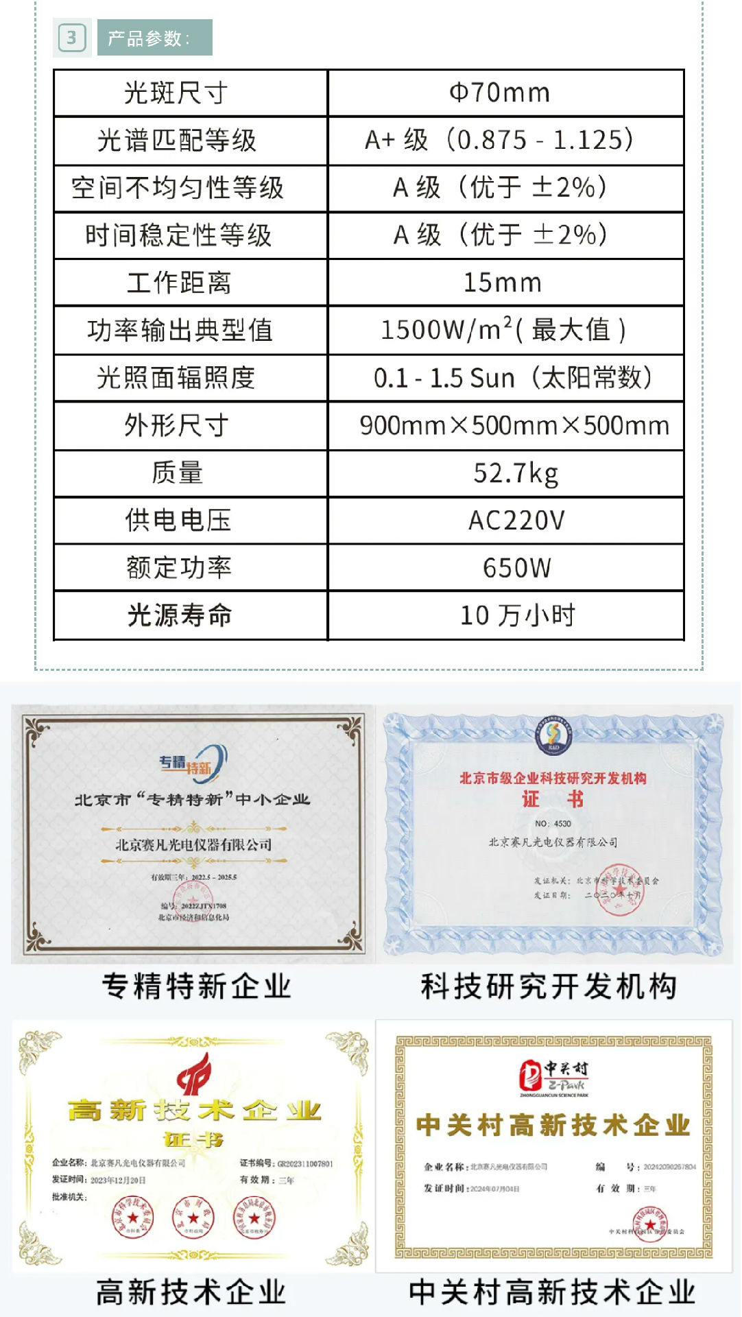 7OAM1.5系列A级太阳模拟滤光片