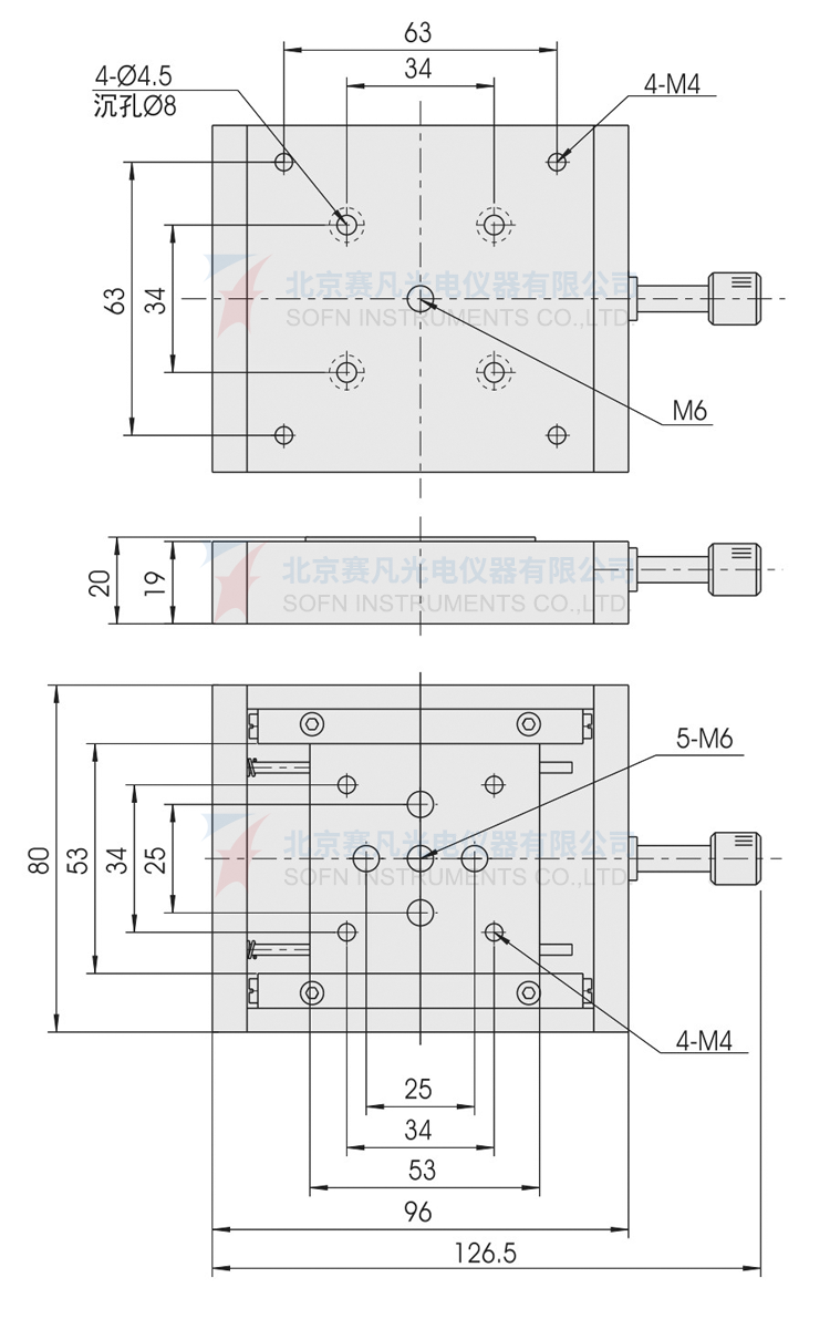 3、细牙螺杆或测微在平移台中心放置,操作方便;