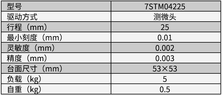 1、导轨为交叉滚柱配合V形钢导轨,精度高,承载大,使用寿命长; 2、台面为钢台面,刚性好,耐蚀性好,适合工业生产; 3、位移调整采用测微头; 4、测微头在平移台中心放置,操作方便; 5、采用弹簧复位结构,消除轴向间隙; 6、台面和底座分布标准孔距的安装孔,方便安装和组合; 7、可与其它系列位移台组成多维调整架。