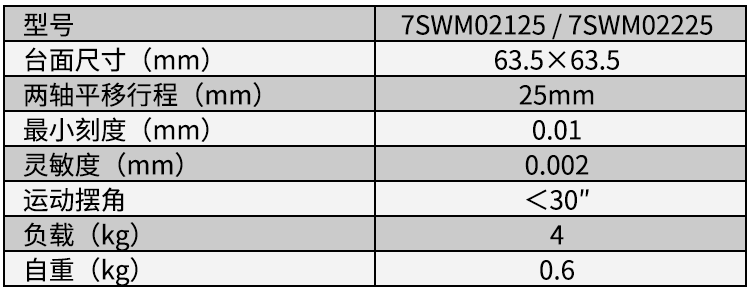 7SWM02125(右手型)/7SWM02225(左手型)刚毅双轴平移台