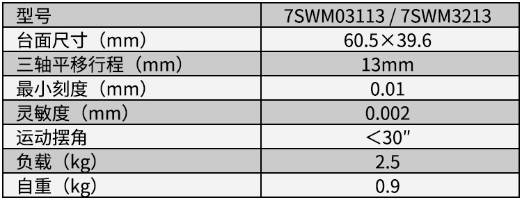 7SWM03113(右手型)/7SWM03213(左手型)轻灵三轴平移台