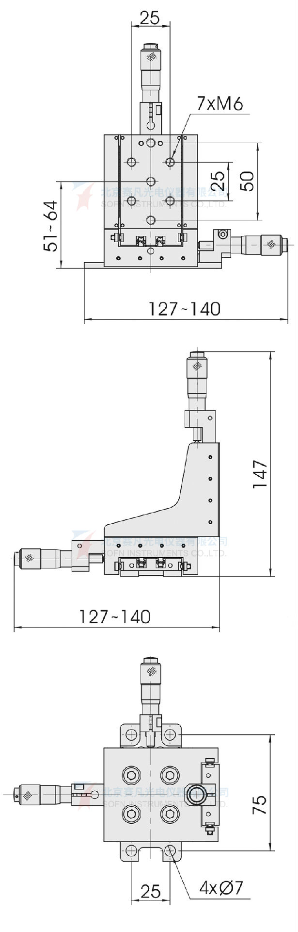 1、结构紧凑设计,在小的体积内实现三轴平移调整,并且三轴正交精度高;