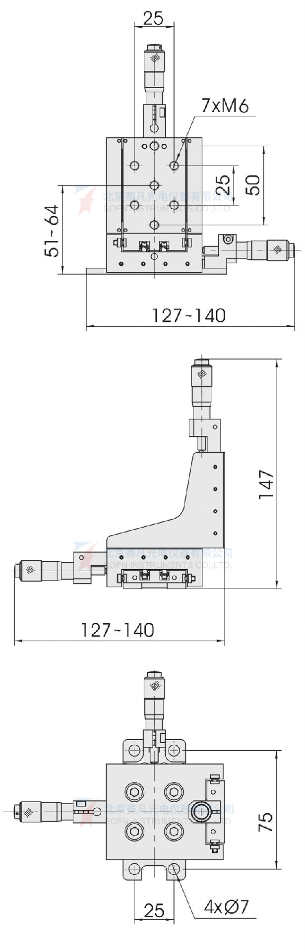 7SWM04113(右手型)/7SWM04213(左手型)刚毅三轴平移台