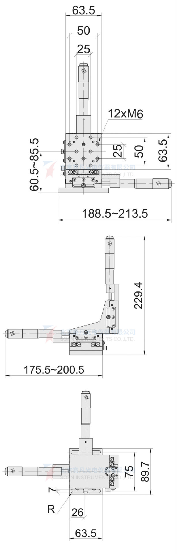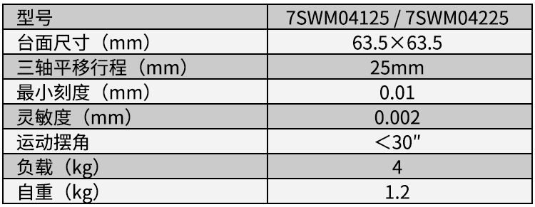 7SWM04125(右手型)/7SWM04225(左手型)刚毅三轴平移台