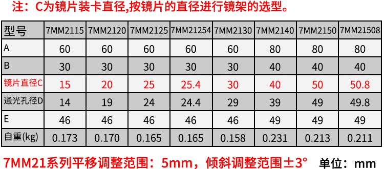 7MM21系列三维调整镜架