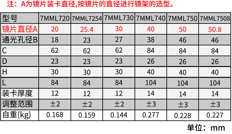 7MML7系列两维调整透镜架