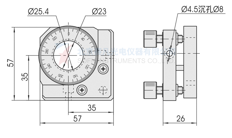 1、可装卡1in(25.4mm)的偏光镜片,压圈锁紧;2、采用精密轴系旋转调整,定位稳定、可靠;3、周圈360°刻划,方便读数;4、可进行两维倾斜调整;5、 M6x0.25细牙螺杆调整,碟形弹簧复位,弹性可调,直至刚性。