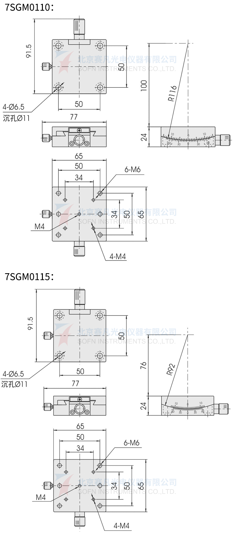 1、提供旋转角度调节; 2、安装面水平放置,方便安装固定; 3、成对设计,叠加后旋转中心为同一点,可进行正交双轴同心旋转调整; 4、蜗轮副驱动,燕尾导轨,运动舒适,精密可靠; 5、手轮锁紧,安全可靠。