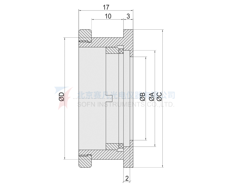 1、压圈锁紧, 聚四氟乙烯垫圈保护镜片;