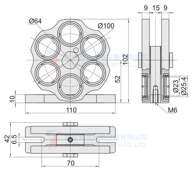 1、可夹持滤光片或其他光学元件; 2、更换滤光片时光路中心不变; 3、可拆卸底座,可在台面固定,也可支撑杆支撑固定。