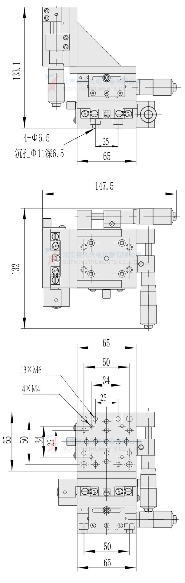 1、提供三维平移调节;2、位移调整采用测微头,运动舒适,精度高,定量直观;3、采用弹簧复位,消除轴向间隙;4、底座标准孔距的安装孔,方便安装。