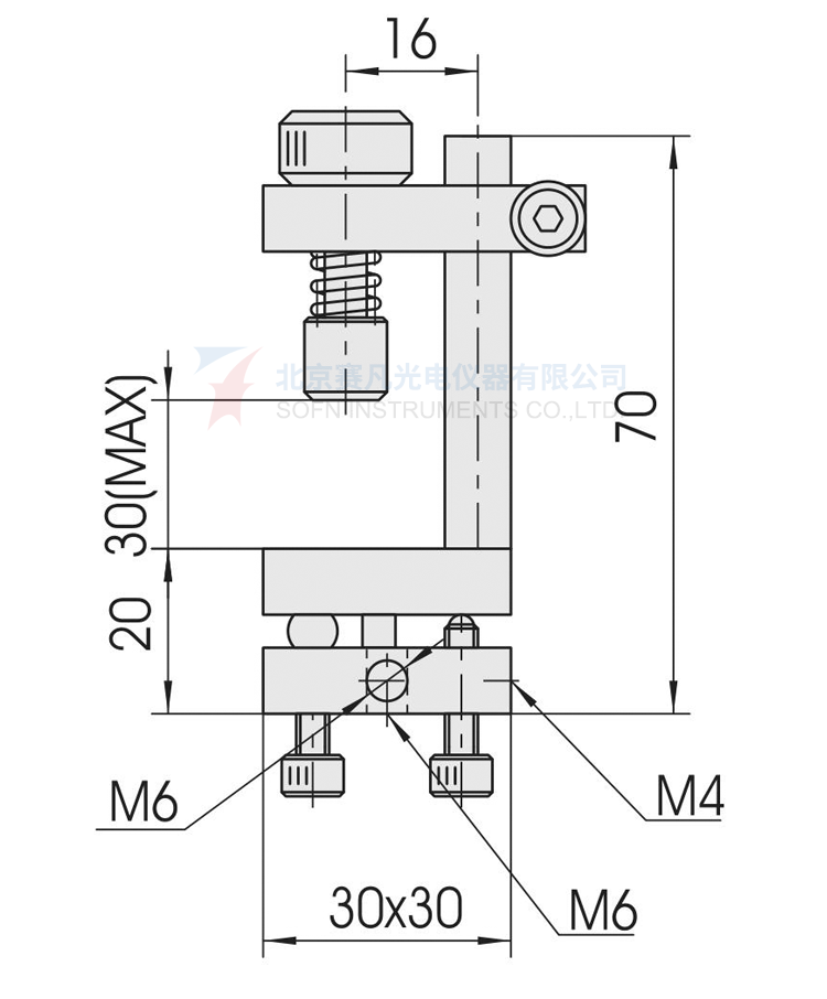 1、可将棱镜做两维倾斜调整;2、M4x0.3细牙螺杆调整,精度高;3、高品质碟簧复位,稳定性好;4、可调弹性夹紧装置,直至刚性卡紧,装卡高度可调,方便可靠。