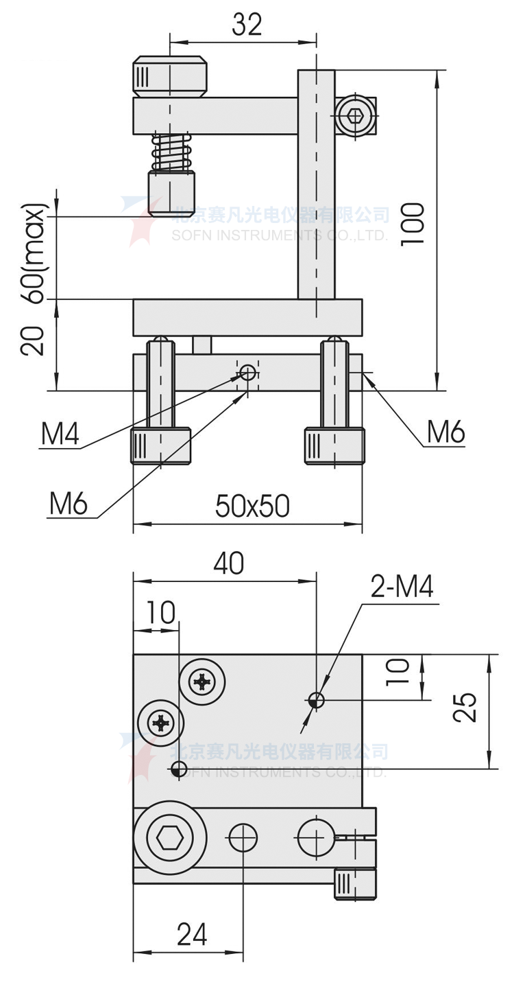 1、可将棱镜做两维倾斜调整;2、M6x0.25细牙螺杆调整,精度高;3、高品质碟簧复位,稳定性好;4、可调弹性夹紧装置,直至刚性卡紧,装卡高度可调,方便可靠。
