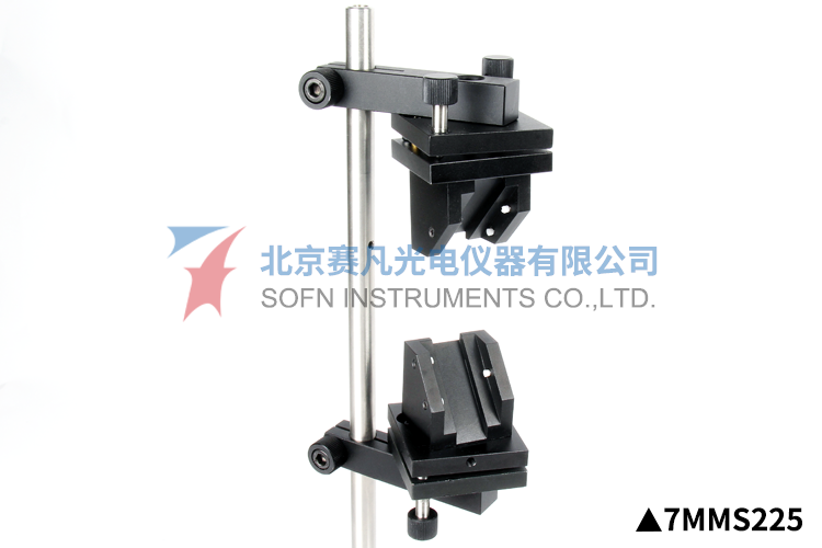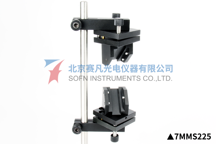 1、7MMS225光束折转架可将光束改变方向或高度;2、可夹持宽度25mm的棱镜,适应不同直径的光束;3、镜座可360°旋转,并可±4°倾斜调整;4、调整机构采用M6x0.25超细螺杆驱动,碟簧复位,稳定性好;5、支杆采用12mm直径标准支撑杆,安装方便,美观适用。