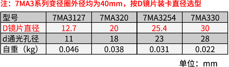 1、7MA3系列变径圈可与多种系列光学镜架配套使用,改变可固定的镜片大小;