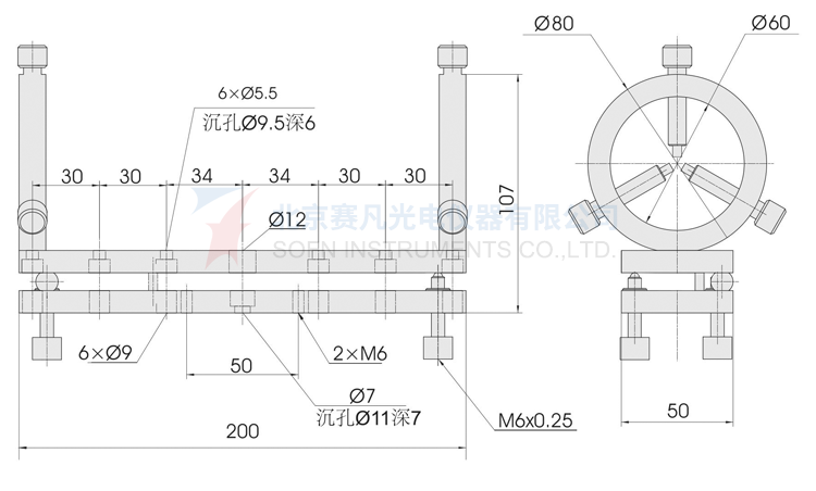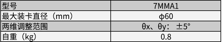 1、可将激光管两维倾斜调整;2、前后两个固定三爪,固定牢固;3、可夹持不同直径的激光管或圆柱体,且中心可调;4、两个三爪相互距离可调,适应不同长短激光器;5、M6x0.25超细牙螺杆驱动,高品质碟形弹簧复位。