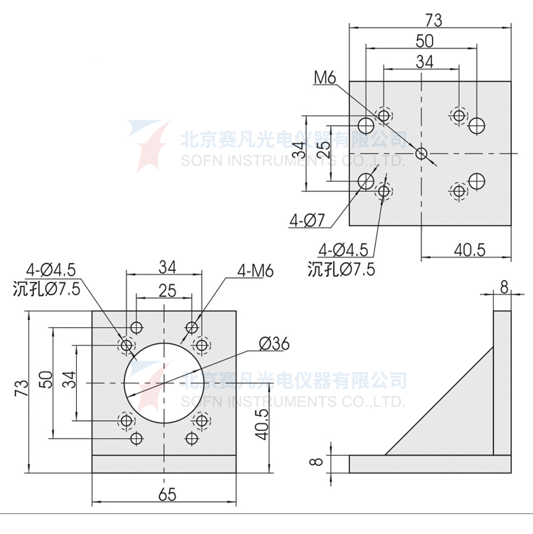1、用于将位移台组合成两维或三维正交系统,也可将其他调整架正交组合;2、两正交面精密加工,保证垂直度要求;3、多种安装孔位设计通用性强。