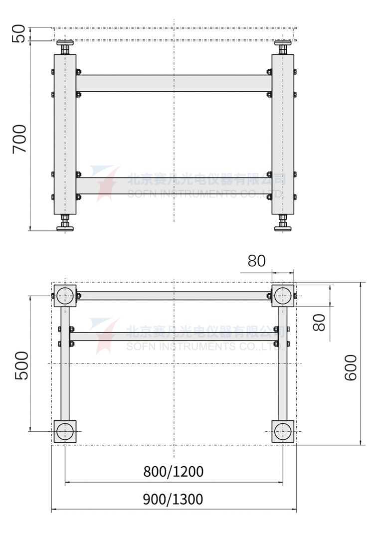 2、高度可调,保证多个平台拼接时高度一致且水平;