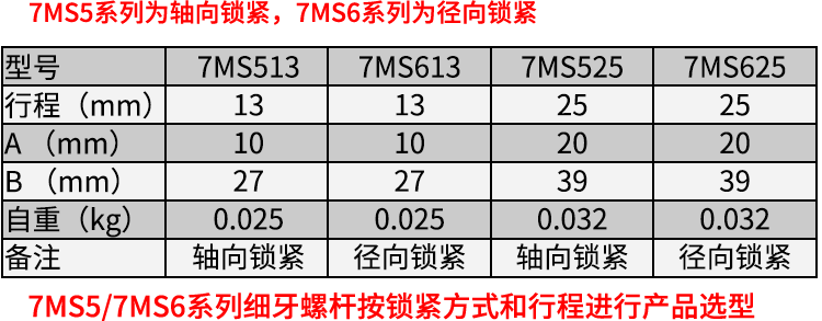 7MS5轴向锁紧/7MS6径向锁紧系列细牙螺杆
