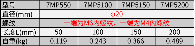 2、支撑杆直径20mm,支撑杆两端接头为M6阴-M4阴;