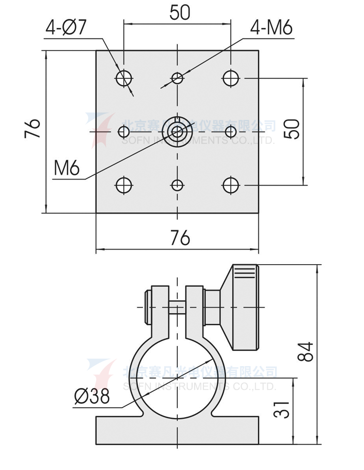 2、安装面上有标准孔距的M6螺纹孔和光孔,方便固定其它调整架或物品;