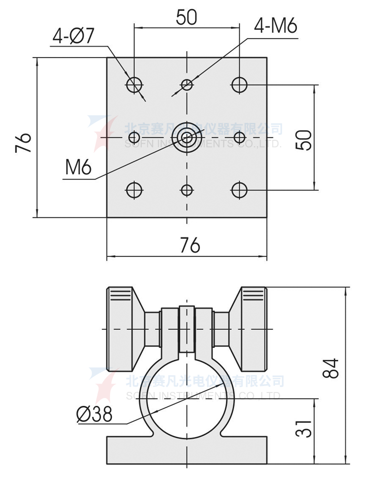 2、安装面上有标准孔距的M6螺纹孔和光孔,方便固定其它调整架或物品;