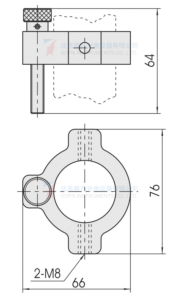 1、配合7MPC3支撑棒直角夹具使用,可沿支撑棒做升降微调;2、侧面顶丝锁紧,牢固可靠。