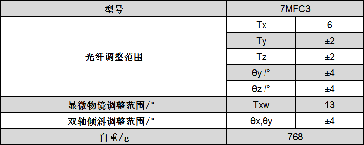 1、在7MFC2光纤耦合器基础上将显微物镜座改进为由测微头驱动的可移方式,使Tx调整范围更大,且可定量; 2、导轨采用精密线性滚珠导轨副,运动稳定,精度高; 3、增加了双轴倾斜调整功能,与光路耦合时更方便。