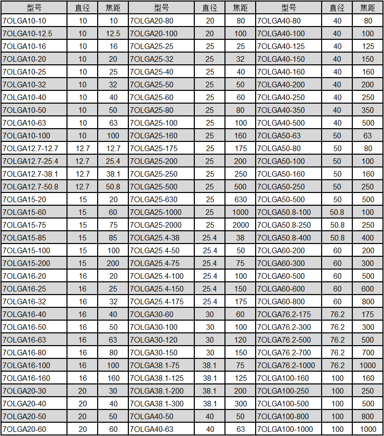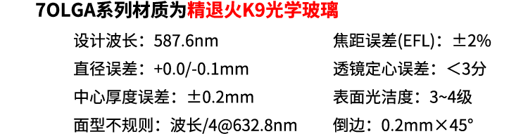 2、7OLGA系列材质为精退火K9光学玻璃;