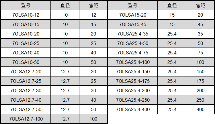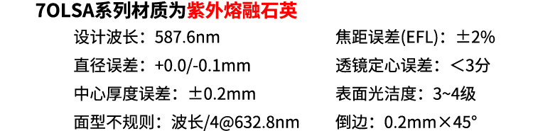 2、7OLSA系列材质为紫外熔融石英;