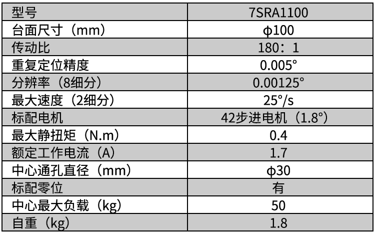 1、配有步进电机和标准RS232接口,可单独增加光电零位,配合7SC系列运动控制器可实现自动控制; 2、旋转轴系采用轴承钢材料精密加工而成,配合精度高,承载大,寿命长; 3、传动采用蜗轮蜗杆结构,台面可以任意正反旋转; 4、蜗轮蜗杆经过精密研配,运动舒适,空回极小; 5、巧妙设计的消间隙结构,可以调整因长期使用造成的间隙。