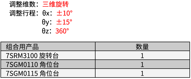 1、提供三维旋转位移调节;2、位移调整蜗轮副驱动,精度高,承载大;3、旋转台台面和角位台侧面有数字刻划,读数定量直观;4、底座标准孔距的安装孔,方便安装。