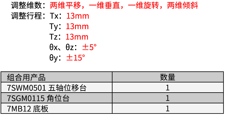 1、提供六维位移调节,两维平移,一维升降,一维旋转,两维倾斜;