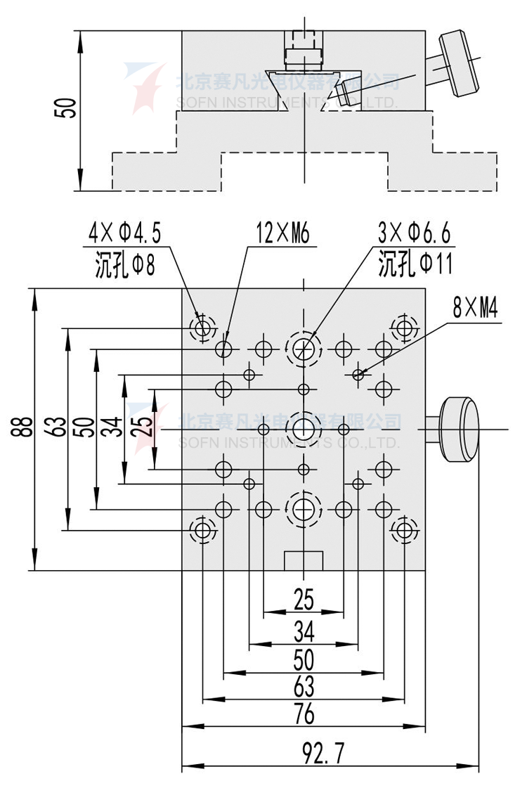 1、与7MR1系列光学滑轨配套使用,可将各种调整架组合成同轴的光学系统;