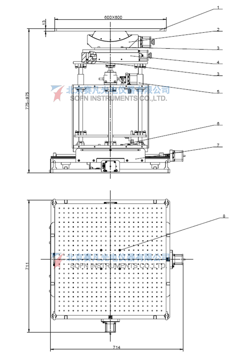 1、工作台面尺寸:600mm×600mm;2、X、Y平移调节量:±150mm,Z向平移调节量±100mm;3、旋转角度:360°;4、俯仰角度:±3°;5、角度分辨率:10角秒;6、承重:不小于80kg;