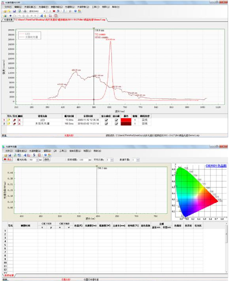 4、可同时完成光谱波长与强度分布测量,吸光度测量,色品坐标和颜色测量;