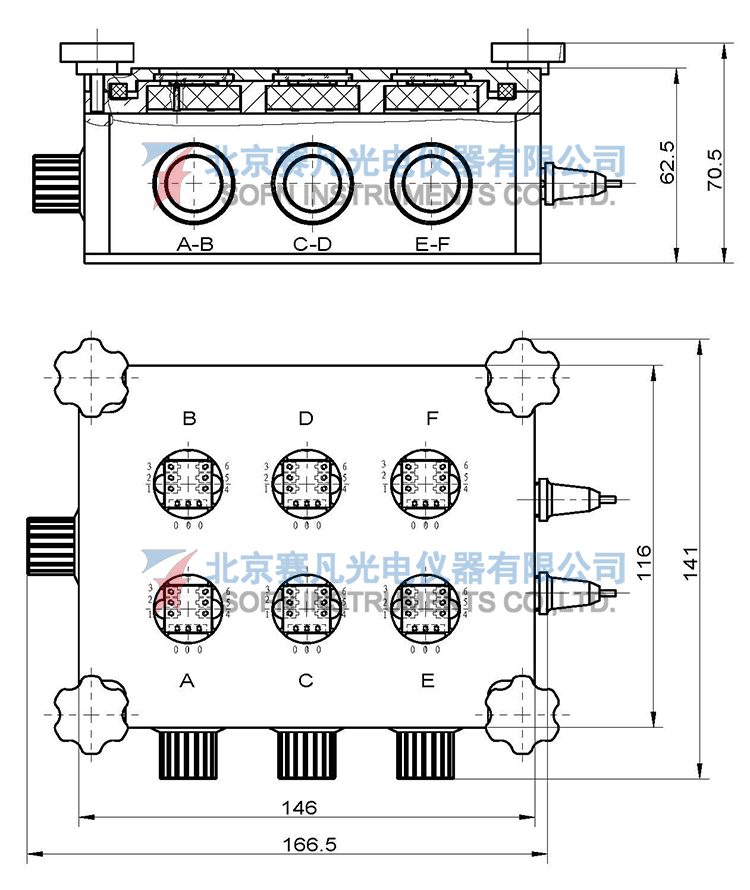1、密闭式结构,石英玻璃与电池片零空气层接触;2、二线制测试,可同时测试6片电池片;3、电池片尺寸:15mm×15mm×1.15mm;4、探针数量:54根(每组9根,3根共电极,6根阳极);5、4个拨码开关,2个TRB-KYD三同轴母座和2根TRB-TRB-2m三同轴电缆;6、探针选用φ2.0×9.0探针,高度一致性良好;7、轮廓尺寸:166.5mm×141mm×70.5mm。