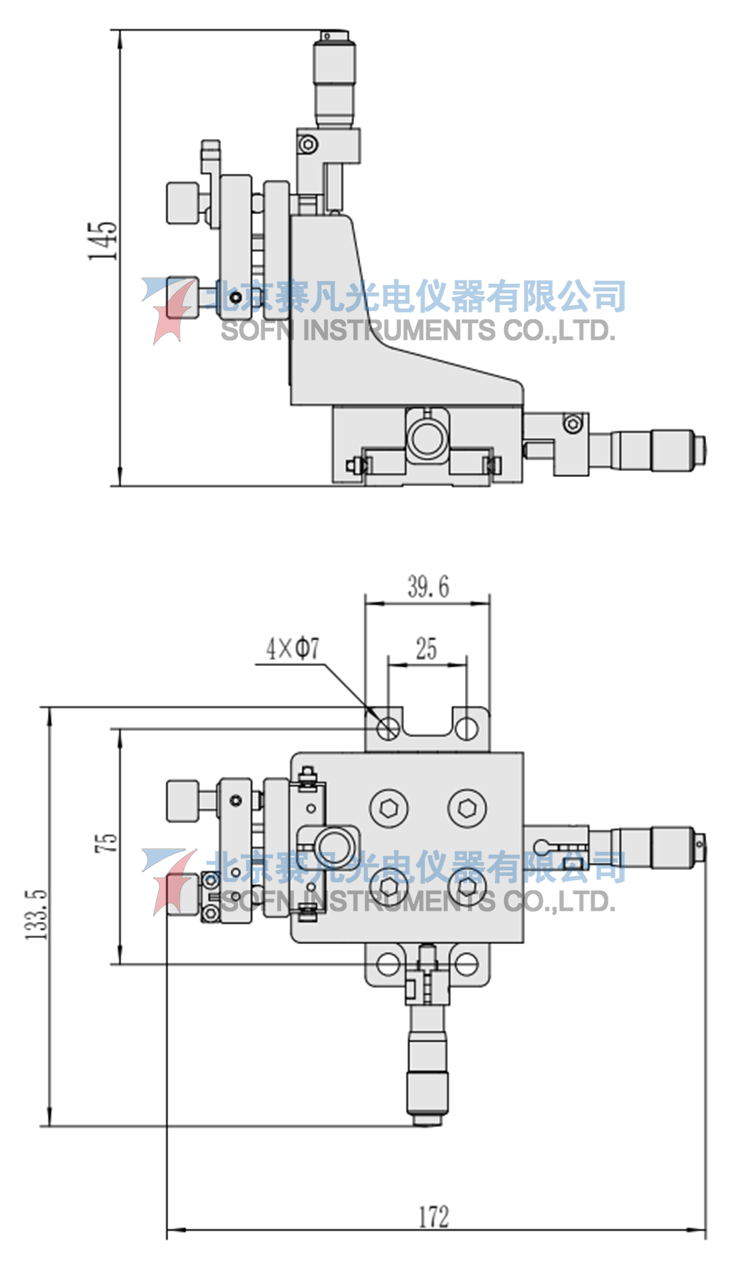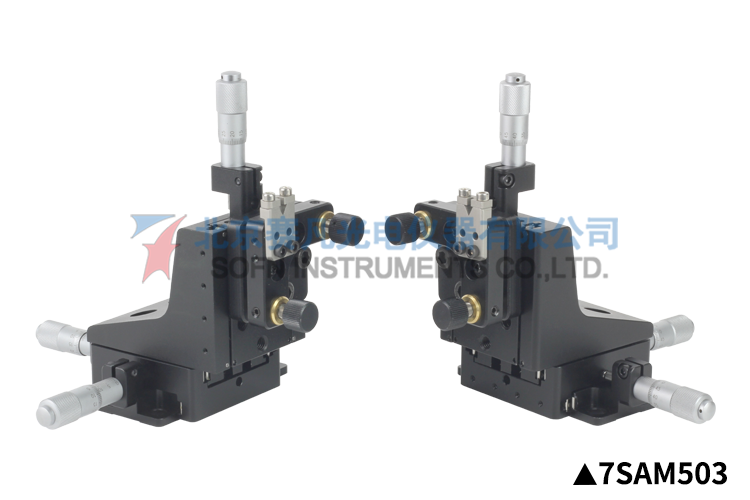 2、倾斜调整采用M6×0.25超细牙螺杆,精度高,稳定性好,三维线性移动采用测微头驱动,灵活性强,可按刻划读数;