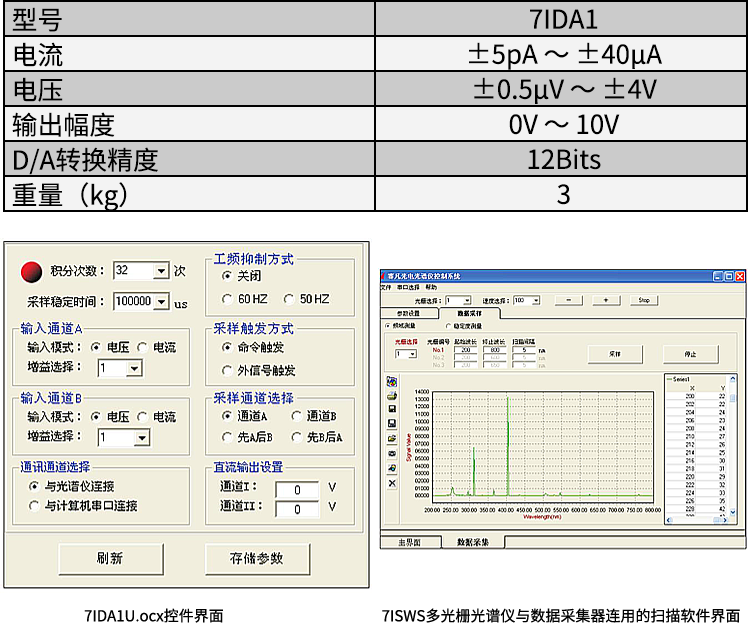 7、标准RS232串行接口及与7ISW系列光谱仪的并行接口;